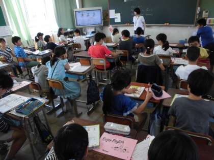 文部科学省の新教材を使って学習しています。電子教材から流れる英語を使って自己紹介のやり方に慣れ親しみました。