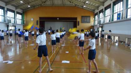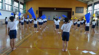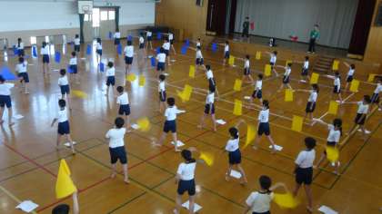 運動会に向けて,組体操の練習です。今日は旗を振っての演技に挑戦です。みんなで旗を振ったときの様子や音は,なかなかに見応えがあります。また楽しみが増えました。