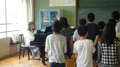 歌声に吸い寄せられて音楽室に行ってみると,5年生がみんなで気持ちよくいい歌声を響かせて歌っていました。音楽の先生のピアノ伴奏に合わせて歌う5年生。とてもすてきです。