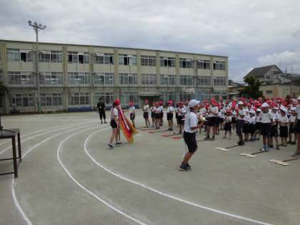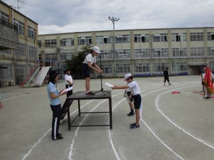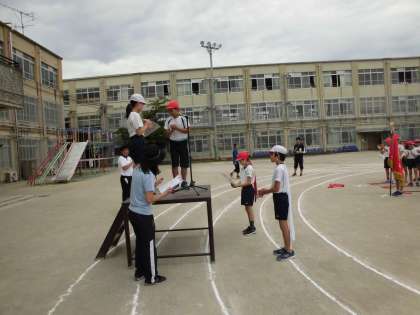 閉会式の練習では応援団の団長が優勝旗,準優勝トロフィーの授与の練習をしました。応援団副団長は応援賞の賞状授与の練習を行いました。