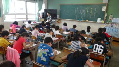 「漢字の広場」の学習です。主語と述語の関係に気をつけながら,これまで学習した漢字を使って文作りをしました。