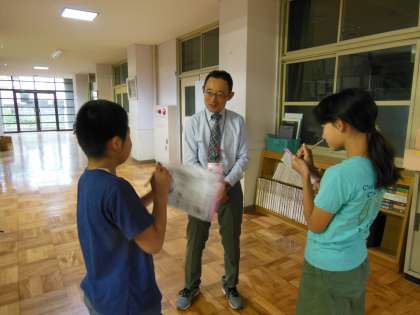 6年生は,「できること」「できないこと」のインタビューを,友だち同士だけでなく教職員にもインタビューしています。廊下で教職員にインタビューする6年生の姿が,あちらこちらで見られます。