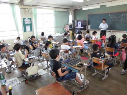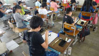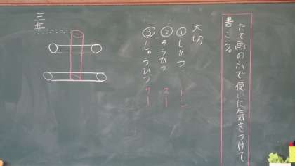 習字の学習をしました。縦画に気をつけて「土」の字を書きました。子ども達はめあてを意識して丁寧に書きました。