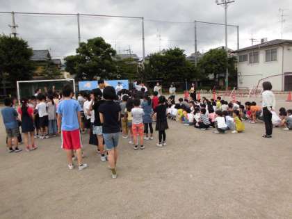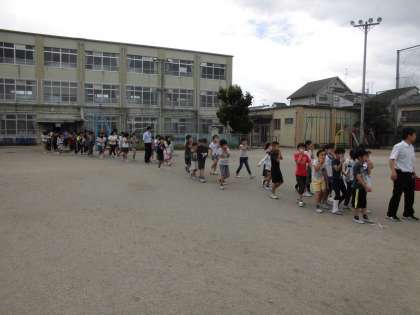 2時間目に理科室から火災が発生したという想定で避難訓練を実施しました。子ども達は「お・は・し・も・て」を意識して真剣な態度で訓練を行いました。