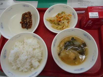 今日の感想より「今日の給食はすごくおいしかったです。特にみそ汁がだしの味がすごくでていておいしかったです。魚は本当の魚のあまさがあって味つけもすごくおいしかったです。野菜はたくさんの味があって,いろんな色が混ざっていてすごく合って1つ1つの野菜がひたって,いい感じになっていてすごくおいしかったです。」(6年生)