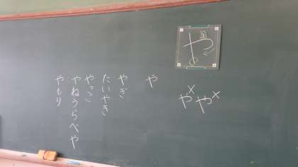 平仮名「や」の練習です。バランスをとるのが難しいですが,姿勢を正して,見本を見ながら集中して練習していました。