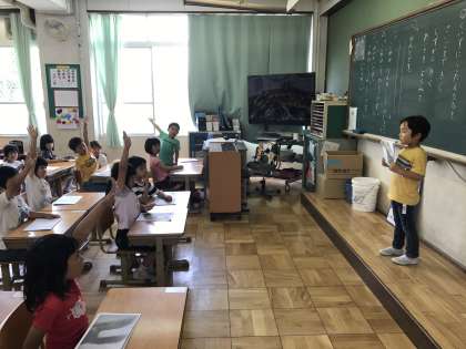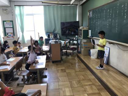 国語科「くちばし」の学習の最後に、自分で作った動物クイズを出し合いました。初めにペアの友達と出し合い、その後学級全体で出し合いました。「ひんと・とい・こたえ・せつめい」の流れを「これは、なんの○○でしょう。」など、正しい言葉を使って話すことができました。