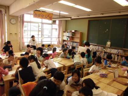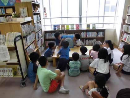 図書室では高学年が大型絵本の読み聞かせをしたり,各自で読書をしたりしました。