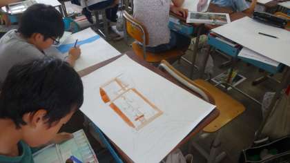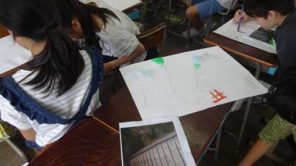 下鴨神社に写生に行きましたが,今日から絵の具で色を塗り始めました。写真をもとに,絵の具を混ぜ合わせて色を作り,ていねいに塗っていきます。これからも根気よく作品作りに取り組んでほしいです。