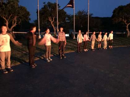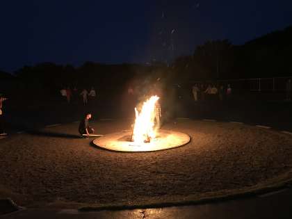 キャンプファイヤーの様子です。「言うこと一緒。やること逆。」のゲームをしました。