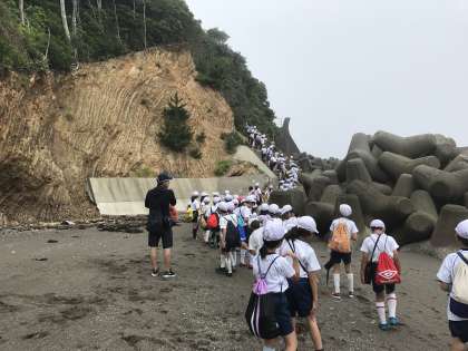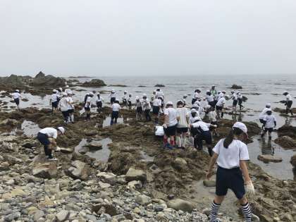 昼からは磯浜観察です。今度はどんな生き物に出会えるのでしょうか。早速に海に入って探しに行きます。