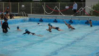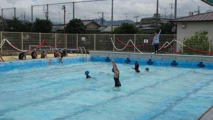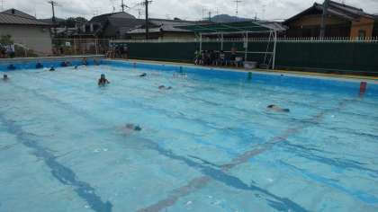 水泳学習の様子です。少しでも泳力を伸ばそうと頑張っています。ペアの友だちと一緒に安全を確認しながら,泳ぎを確かめ合いアドバイスし合いながら学習を進めています。