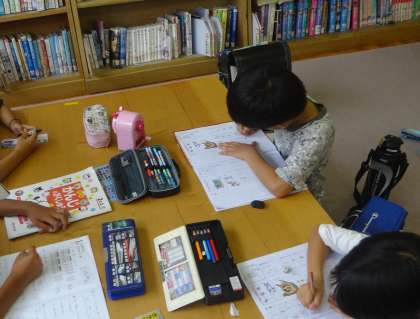 個人懇談会で短縮校時のため,いつもより早く子どもたちは集まってきました。スタッフの方々に見守られながら,宿題などの自分の課題に取り組みました。折り紙をしている子もいて,作品を紹介してくれました。みんな有意義に過ごしています。