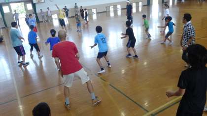 少年補導の方々にお世話になり,ドッヂボール大会が開催されました。子ども,大人,合わせて約60人ほどが集まり,みんなでドッジボールを楽しみました。教職員も一緒に参加し,大盛り上がりの大会となりました。