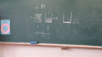 4年生は小数の計算の学習です。「難しい。」と言いながらも,先生と一緒に頑張って計算していました。