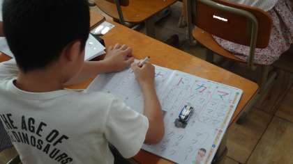 カタカナの学習です。姿勢よく,一文字一文字ていねいに練習していきます。習った字は,文章を書く際に正しく使えるようにしていきたいですね。