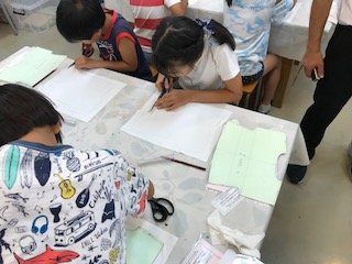 一度練習した後,実際に裁断していきます。みんな真剣な表情です。