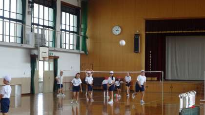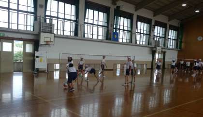 「ソフトバレーボール」の学習をしています。チームでうまくボールをつないでアタックにつなげていきます。チームの時間も練習に一生懸命です。