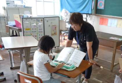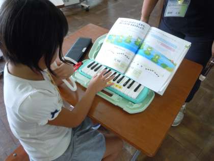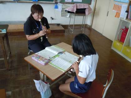 2年生は「山のポルカ」,4年生は「陽気な船長」をそれぞれ演奏しています。2人とも指づかいも息づかいも完璧でした。担任の先生との二重奏にも挑戦しました。