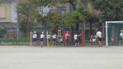 鉄棒の学習をしています。各自が自分のめあてを意識して技に取り組みました。
