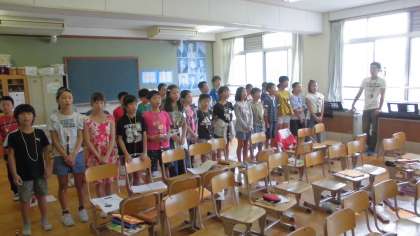 リコーダーの練習をした後で歌を歌いました。子ども達は口をしっかり開けて歌いました。美しい歌声が音楽室に響いていました。