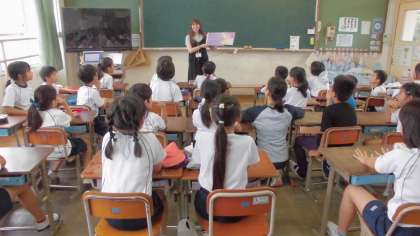 今日のぐんぐんタイムは英語活動を行いました。ALTの先生に絵本を読んでもらいました。子ども達はALTの先生の絵本の読聞かせを熱心に聞き,絵本に出てきた食べ物が好きかどうかを英語で答えていました。