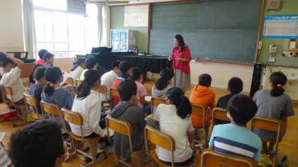 スクールサポーターの先生のピアノ伴奏に合わせて歌う6年生。表情も豊かに,とても気持ち良い歌声を響かせています。授業の後半には,鑑賞もしました。曲想からどんな動物が登場するのか,頭に思い浮かべながら聴いていました。