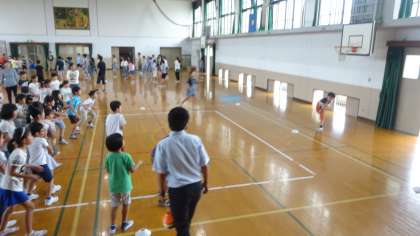今日も,3〜6年生が体育館に集まり,盛り上がりました。5年生対6年生の試合では同点だったの,3分間の延長戦に突入。5年生が勝って,大盛り上がりでした。