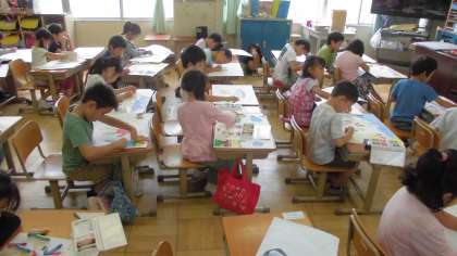お話の絵に取り組んでいます。お話を読んで各自がイメージした様子を描いています。
