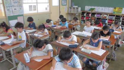 画の書き方を意識して書きました。子ども達は一画ずつ丁寧に書いていました。