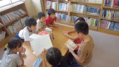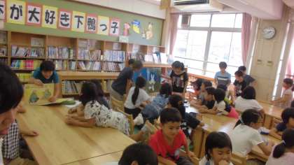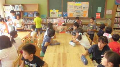 図書室で活動するグループでは6年生の子ども達が絵本や紙芝居の読み聞かせをしました。
