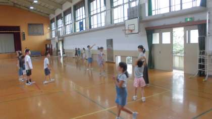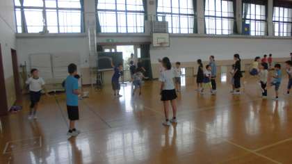 体育館で活動するグループは大縄跳びや鬼ごっこをして活動しました。