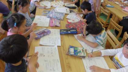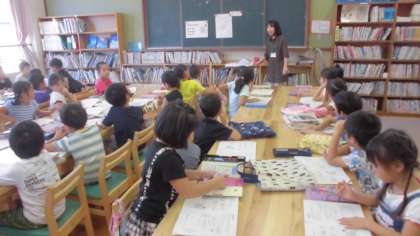 図書館司書の先生と一緒に本の探し方について学習しました。本に貼られているラベルの見方について図書館司書が説明をしました。