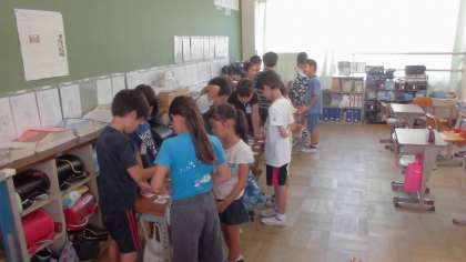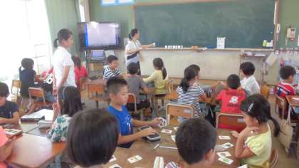 3年生は今学習している単元で出てくる食べ物の言い方についてゲームを通して慣れ親しんでいました。