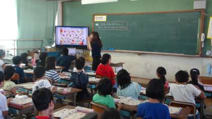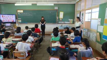 3年生の外国語活動の時間の様子です。今日はALTの先生も一緒に学習です。担任の先生も,できる限り英語を使って授業を進めていきます。みんなも先生の発する英語を正しく聞き取ろうと,集中して学習に取り組んでします。
