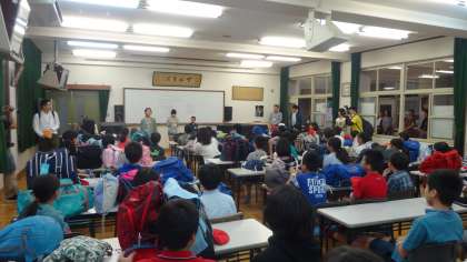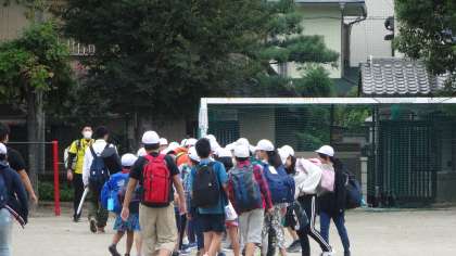 本日より1泊2日の修学旅行に出かけます。朝,雨が少しぱらついたこともあり,出発式は下鴨ホールで行いました。あいさつ,けじめに気を付けながら,楽しい思い出をみんなで作ることを確認しました。おうちの方々にも見送りに来ていただきました。