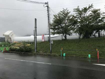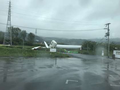 震災記念館に着きました。1時間ほど震災記念館を見学して回ります。ニュースにもなっていた台風で倒れた風車も見ました。