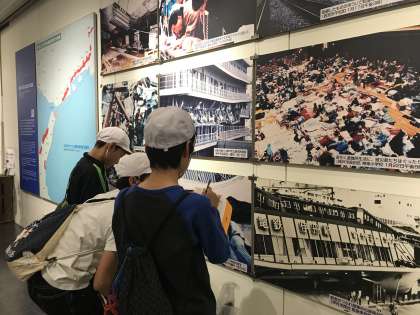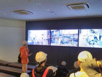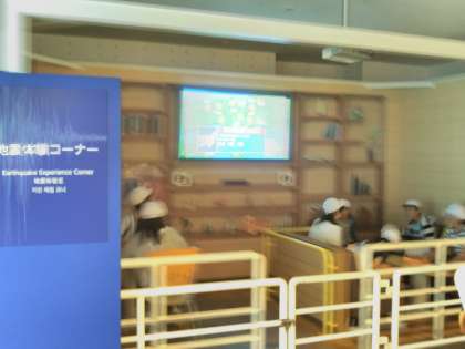 地震体験コーナーや当時を記録した写真の展示,当時の映像も流されています。