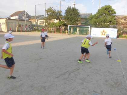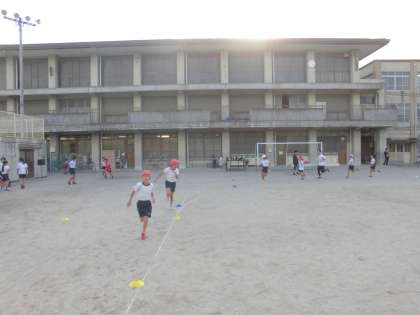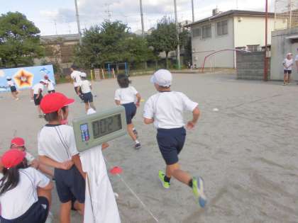 前半は800メートル走のタイムを計りました。ベストタイムが出た子どもが数名いて,とても喜んでいました。後半は鬼ごっこをしました。子ども達は楽しみながらたくさん走りました。