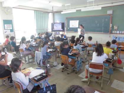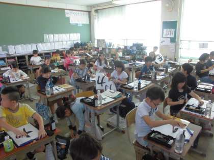 習字の学習をしました。折れとはらいの筆使いにきをつけて「力」を書きました。3年生になり習字の学習が始まりましたが,半年が過ぎて筆の使い方に慣れてきているようです。