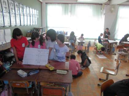 「環境」をテーマにして学習をしてきています。子ども達は今まで調べたことをポスターの形にまとめています。まとめができたグループは発表に向けた練習をしました。