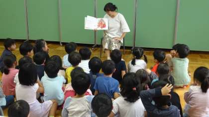 今日は1年生がお話の会に参加しました。この会を楽しみにして,毎回参加している子もいるようです。いつもありがとうございます。
