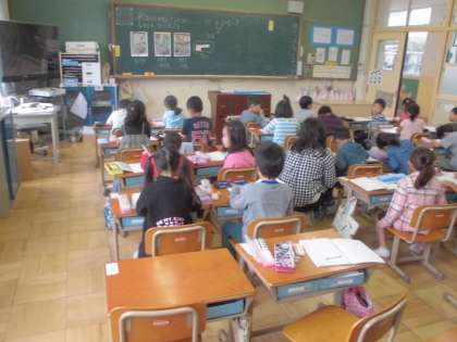 「のりておりるときにいくつになるだろう」のめあてで文章問題に取り組んで学習しました。子ども達は式を立てて計算をして,どのようにして問題を解いたかを説明しあいました。