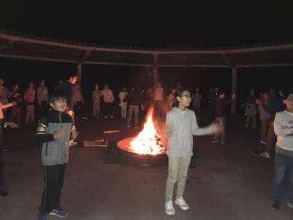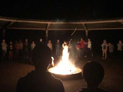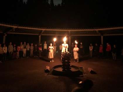 キャンプファイヤーでは,山の家に住む火の神様が登場し,一緒に楽しいひと時を過ごしました。