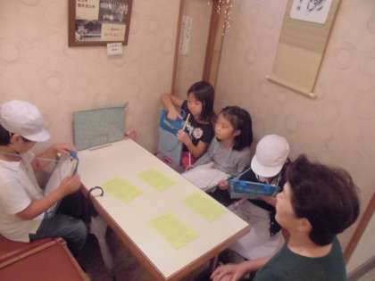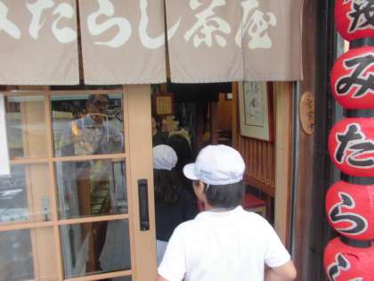 校区探検に出かけました。一つのグループは下鴨本通のお団子屋さんに行きました。子ども達は「一日で何本のお団子がうれるのですか。」「ここのお店はいつからやっていますか。」「お店のこだわりは何ですか。」などの質問をしました。お店の方にはお忙しいところ子ども達の相手をしていただき,ありがとうございました。