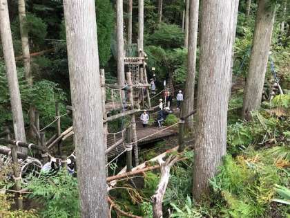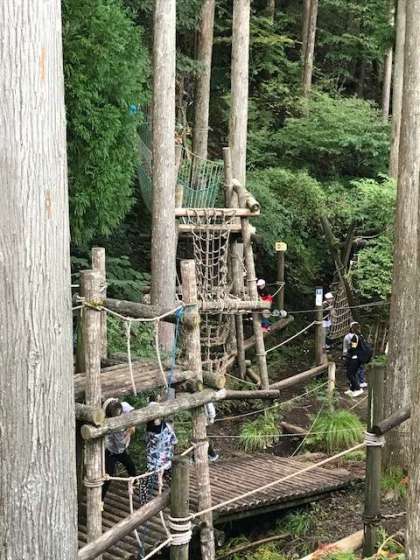 冒険の森のアスレチックに挑戦です。自分の力でできるものにチャレンジしていきます。