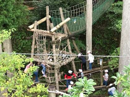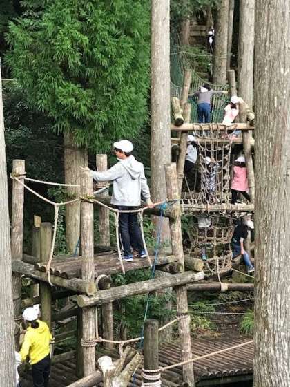 思い思いにアスレチックを楽しんでいます。みんなの楽しい声が山に響いています。