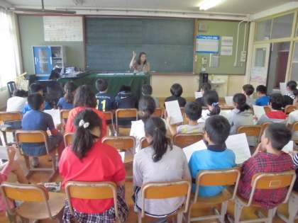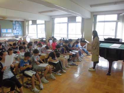 音楽の時間はスクールサポーターの先生と学習をしています。今日はリズムについて学習しました。
