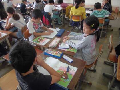 三角形の書き方を調べました。子ども達はコンパスを使って三角形の書き方を見つけ,どのように書いたかを交流しあいました。