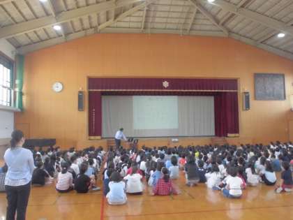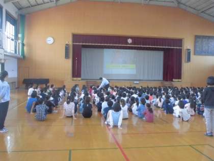 10月の朝会を行いました。まず,校長先生が下鴨小学校の子ども達のいいところや6年生の修学旅行,5年生の山の家の活動で頑張ったことについて話をしました。そして,教職員による寸劇を行い,あいさつの大切さについて話をしました。
